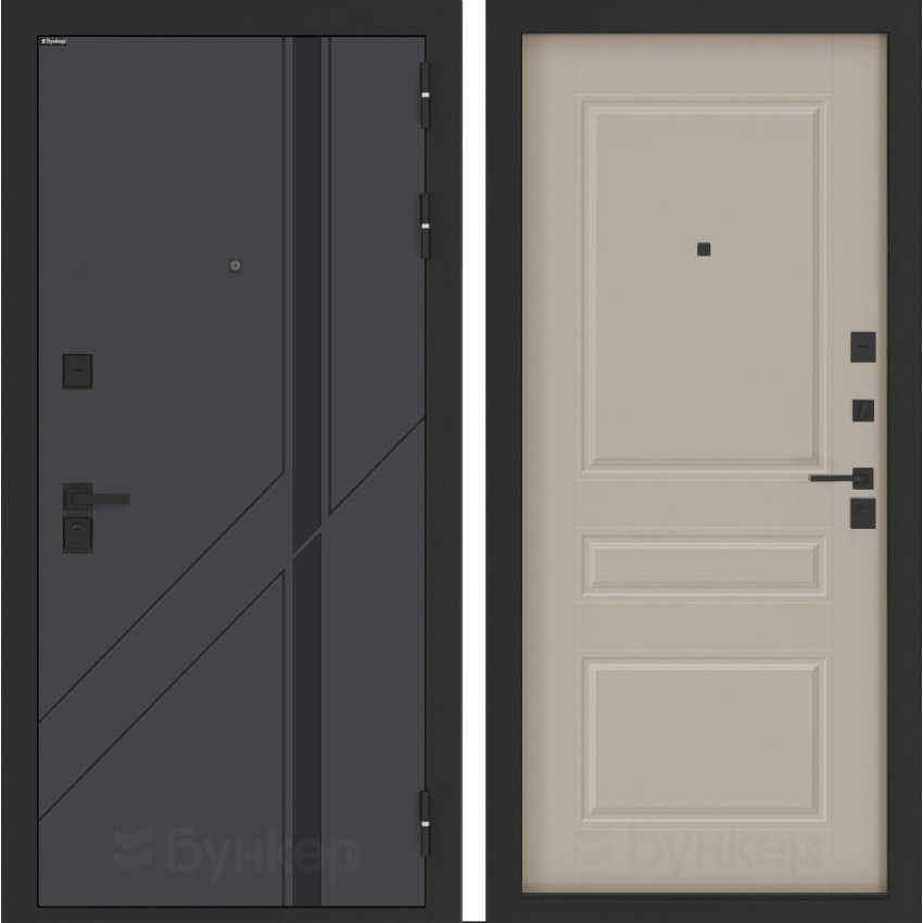 Фурнитура                                                                                                                        Черная матовая: Броненакладка, сувальдные накладки со шторкой 2 шт, ночная задвижка, ручка, глазок, цилиндр ключ-вертушка (производитель не регламентируется)