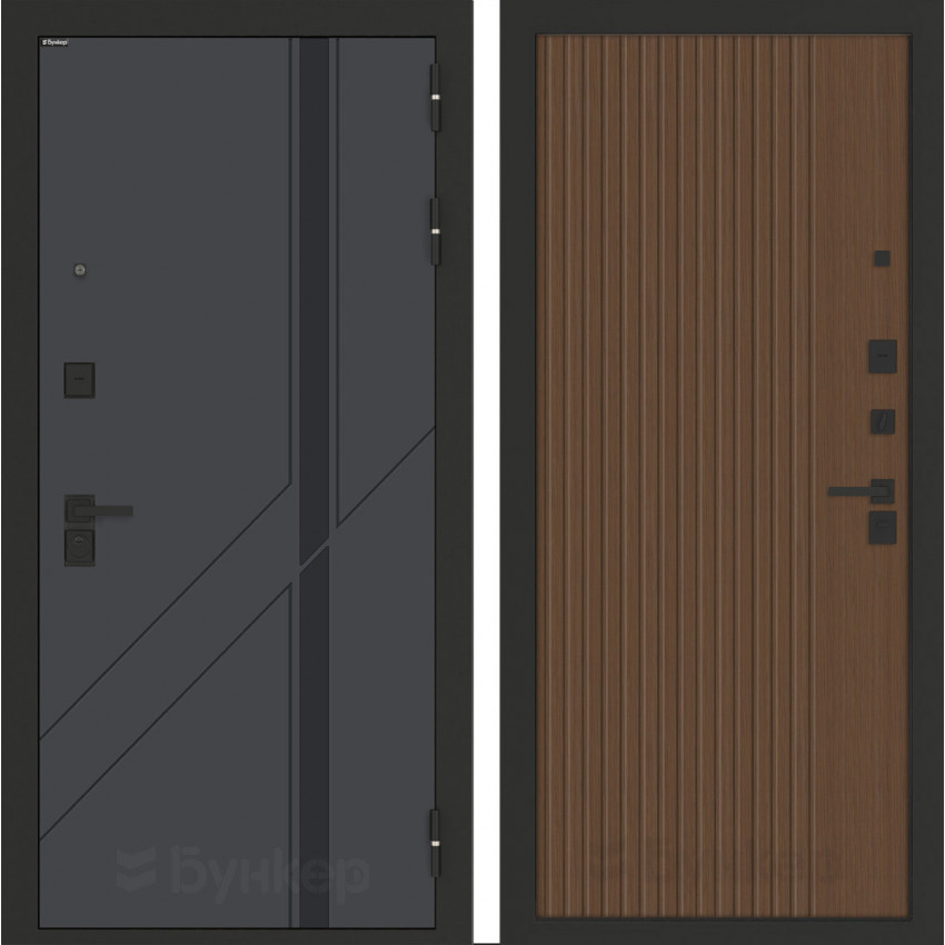 Фурнитура                                                                                                                        Черная матовая: Броненакладка, сувальдные накладки со шторкой 2 шт, ночная задвижка, ручка, глазок, цилиндр ключ-вертушка (производитель не регламентируется)