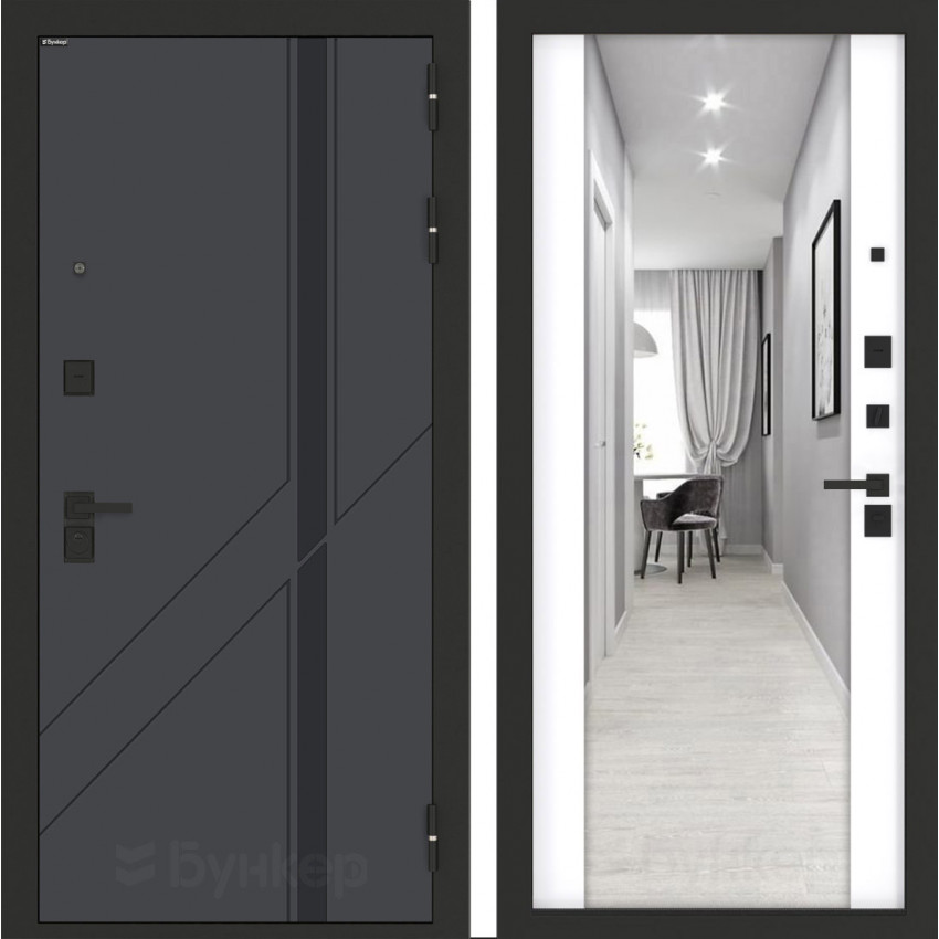 Фурнитура                                                                                                                        Черная матовая: Броненакладка, сувальдные накладки со шторкой 2 шт, ночная задвижка, ручка, глазок, цилиндр ключ-вертушка (производитель не регламентируется)