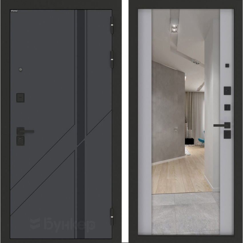 Фурнитура                                                                                                                        Черная матовая: Броненакладка, сувальдные накладки со шторкой 2 шт, ночная задвижка, ручка, глазок, цилиндр ключ-вертушка (производитель не регламентируется)