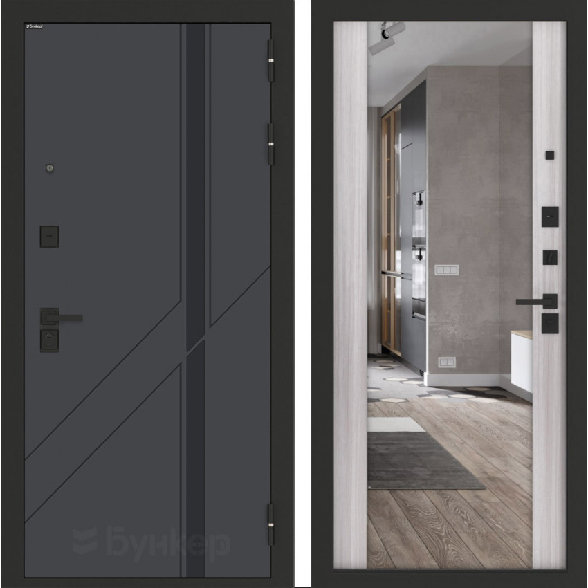 Фурнитура                                                                                                                        Черная матовая: Броненакладка, сувальдные накладки со шторкой 2 шт, ночная задвижка, ручка, глазок, цилиндр ключ-вертушка (производитель не регламентируется)