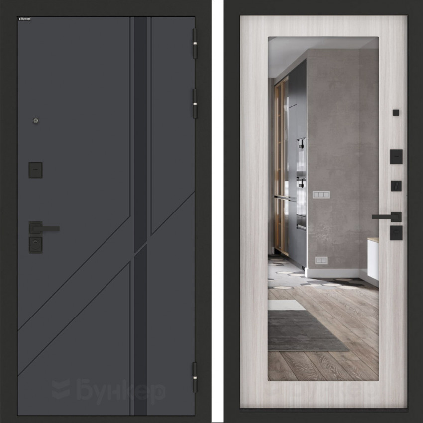 Фурнитура                                                                                                                        Черная матовая: Броненакладка, сувальдные накладки со шторкой 2 шт, ночная задвижка, ручка, глазок, цилиндр ключ-вертушка (производитель не регламентируется)