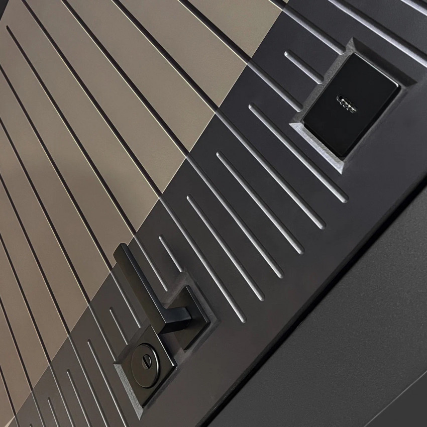 Фурнитура                                                                                                                        Черная матовая: Броненакладка, сувальдные накладки со шторкой 2 шт, ночная задвижка, ручка, глазок, цилиндр ключ-вертушка (производитель не регламентируется)