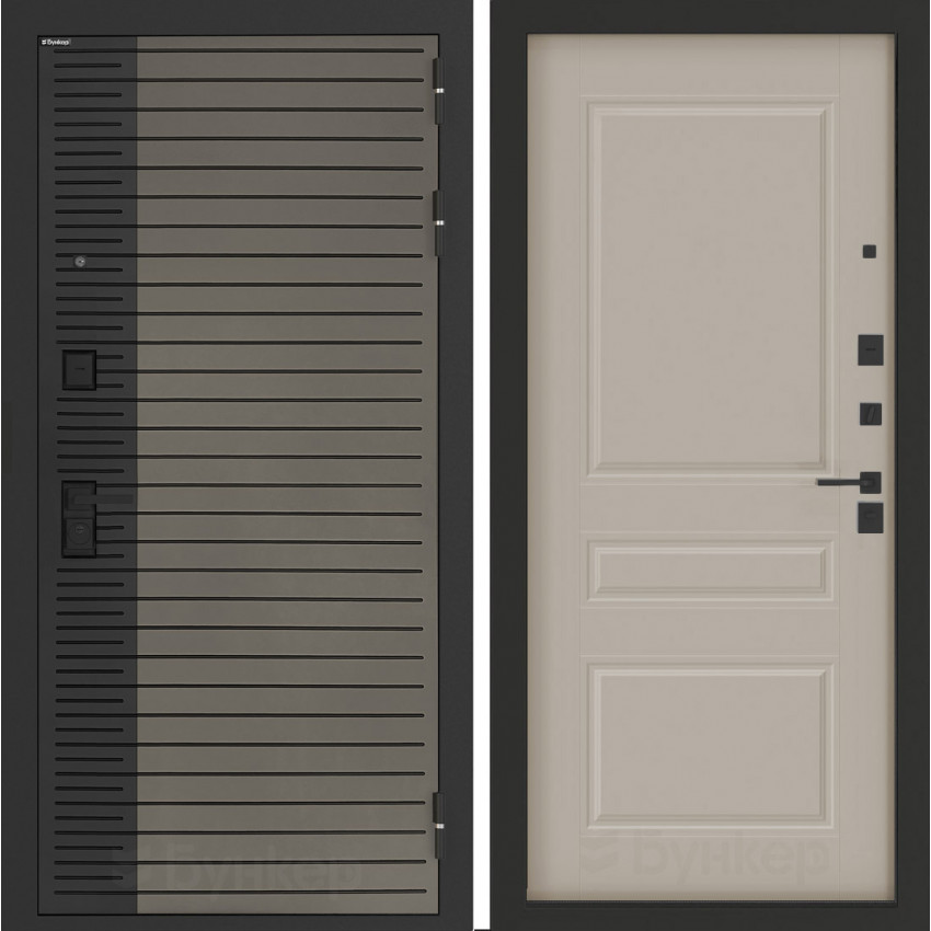 Фурнитура                                                                                                                        Черная матовая: Броненакладка, сувальдные накладки со шторкой 2 шт, ночная задвижка, ручка, глазок, цилиндр ключ-вертушка (производитель не регламентируется)