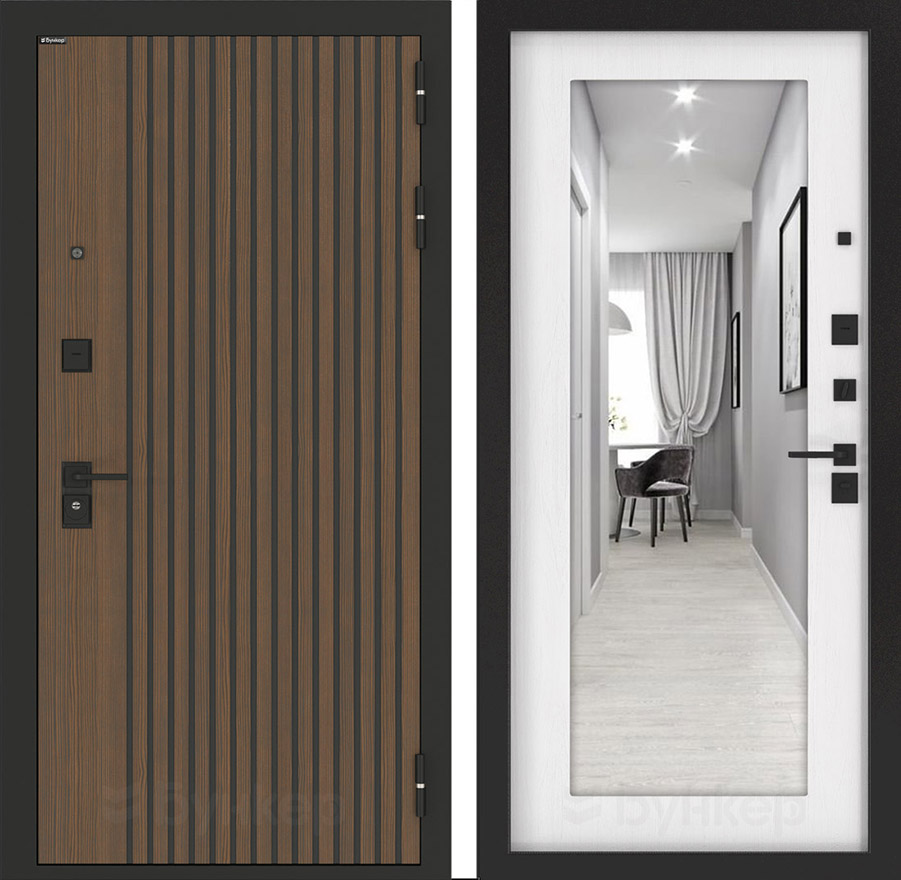 ФурнитураЧерная матовая: Броненакладка, сувальдные накладки со шторкой, ручка, ночник, цилиндр ключ-вертушка (производитель не регламентируется), глазок сбоку