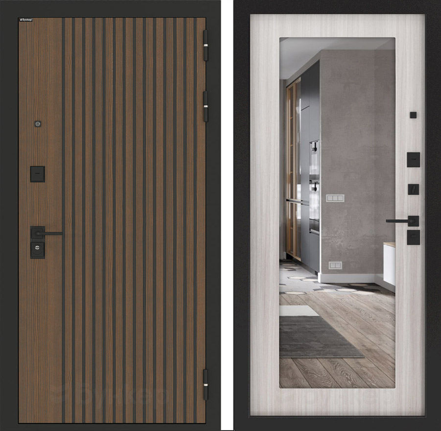 ФурнитураЧерная матовая: Броненакладка, сувальдные накладки со шторкой, ручка, ночник, цилиндр ключ-вертушка (производитель не регламентируется), глазок сбоку