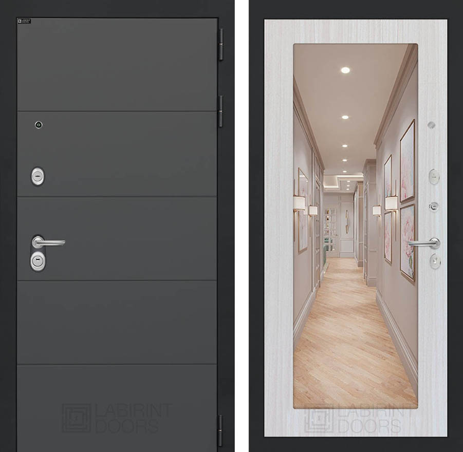 Внешняя отделка:Фрезерованная МДФ панель 10 мм с металлическим наличником, цвет «Графит софт»