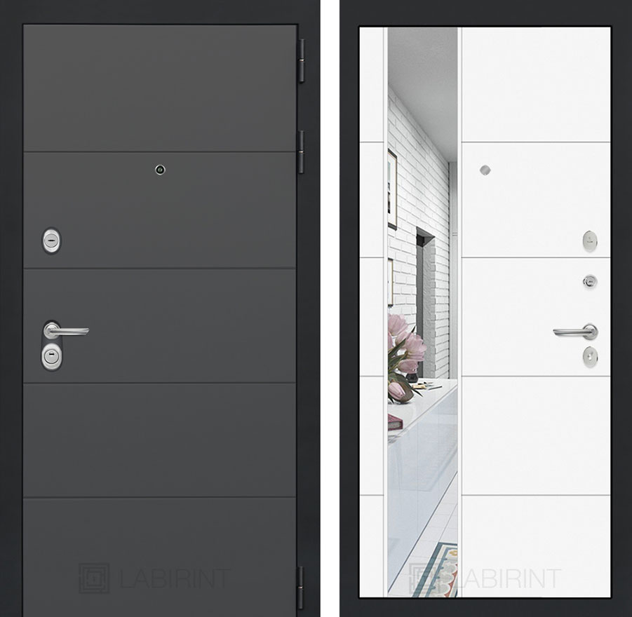 Внешняя отделка:Фрезерованная МДФ панель 10 мм с металлическим наличником, цвет «Графит софт»