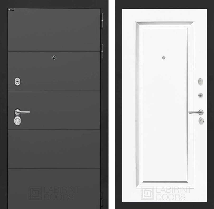 Внешняя отделка:Фрезерованная МДФ панель 10 мм с металлическим наличником, цвет «Графит софт»