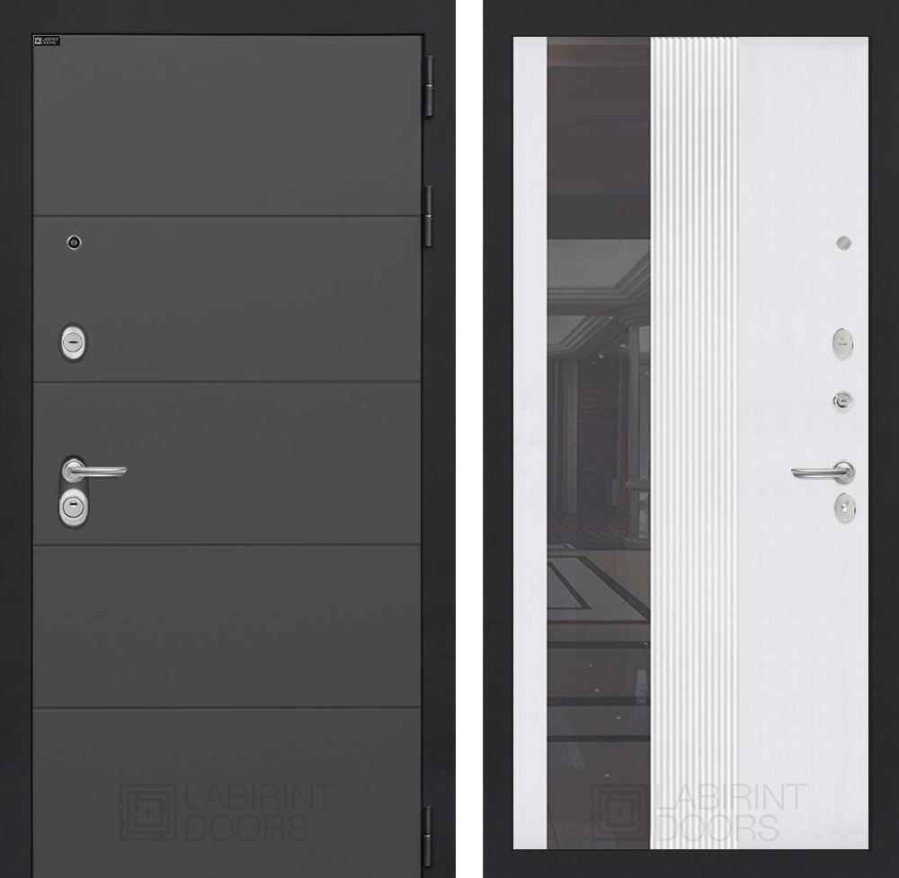 АРТ графит 32 — Зеркало тонированное — Белый рельеф софт