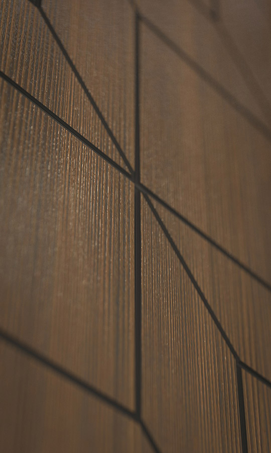 Внешняя отделкаМДФ панель 10 мм с фрезеровкой, цвет Ларче орех с черной патиной