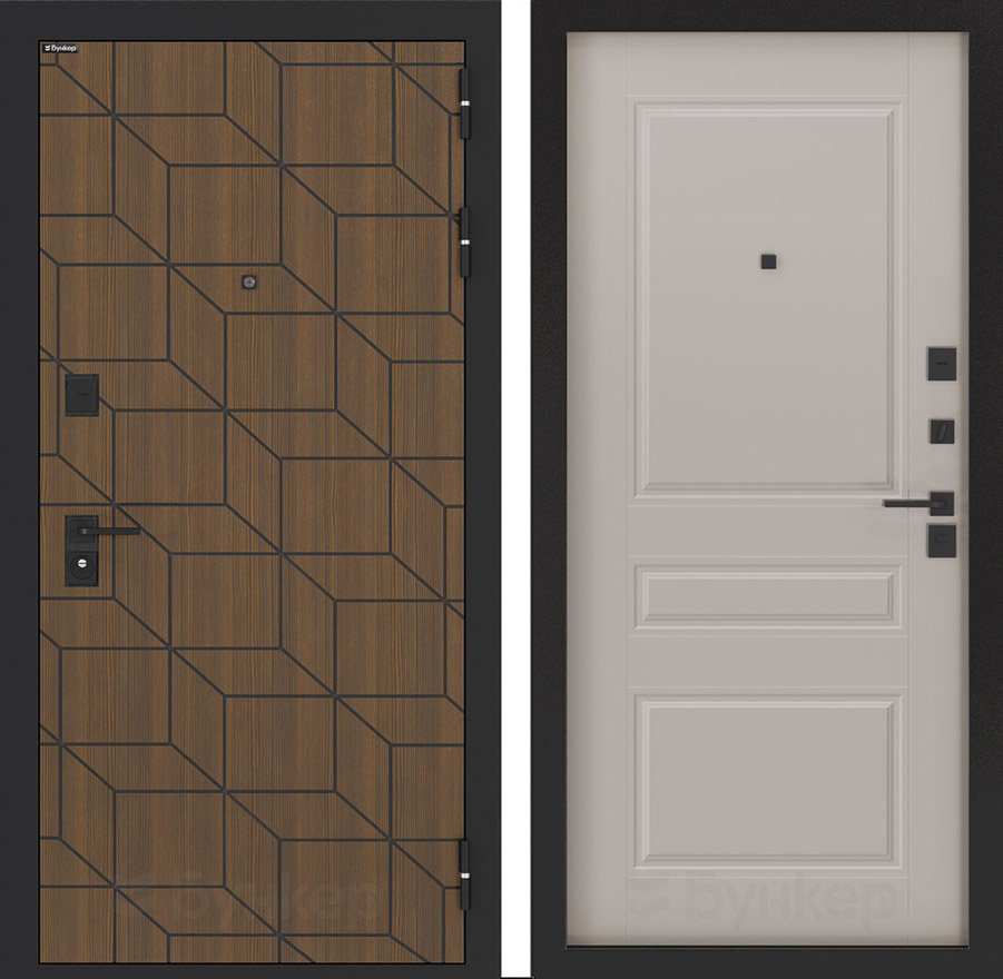 ФурнитураЧерная матовая: Броненакладка, сувальдные накладки со шторкой, ручка, ночник, цилиндр ключ-вертушка (производитель не регламентируется), глазок по центру или сбоку