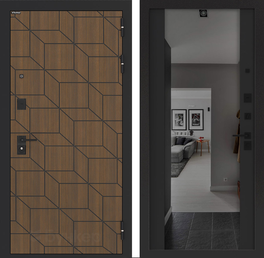ФурнитураЧерная матовая: Броненакладка, сувальдные накладки со шторкой, ручка, ночник, цилиндр ключ-вертушка (производитель не регламентируется), глазок сбоку