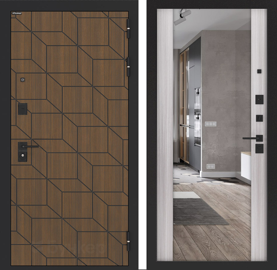 ФурнитураЧерная матовая: Броненакладка, сувальдные накладки со шторкой, ручка, ночник, цилиндр ключ-вертушка (производитель не регламентируется), глазок сбоку