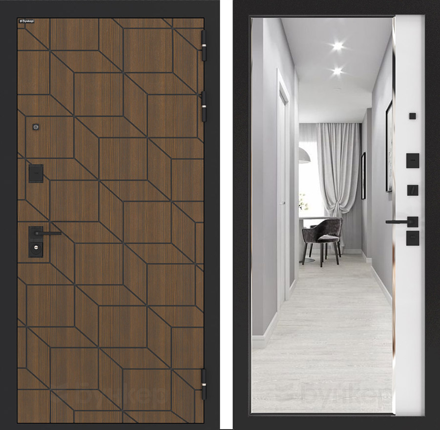 ФурнитураЧерная матовая: Броненакладка, сувальдные накладки со шторкой, ручка, ночник, цилиндр ключ-вертушка (производитель не регламентируется), глазок сбоку