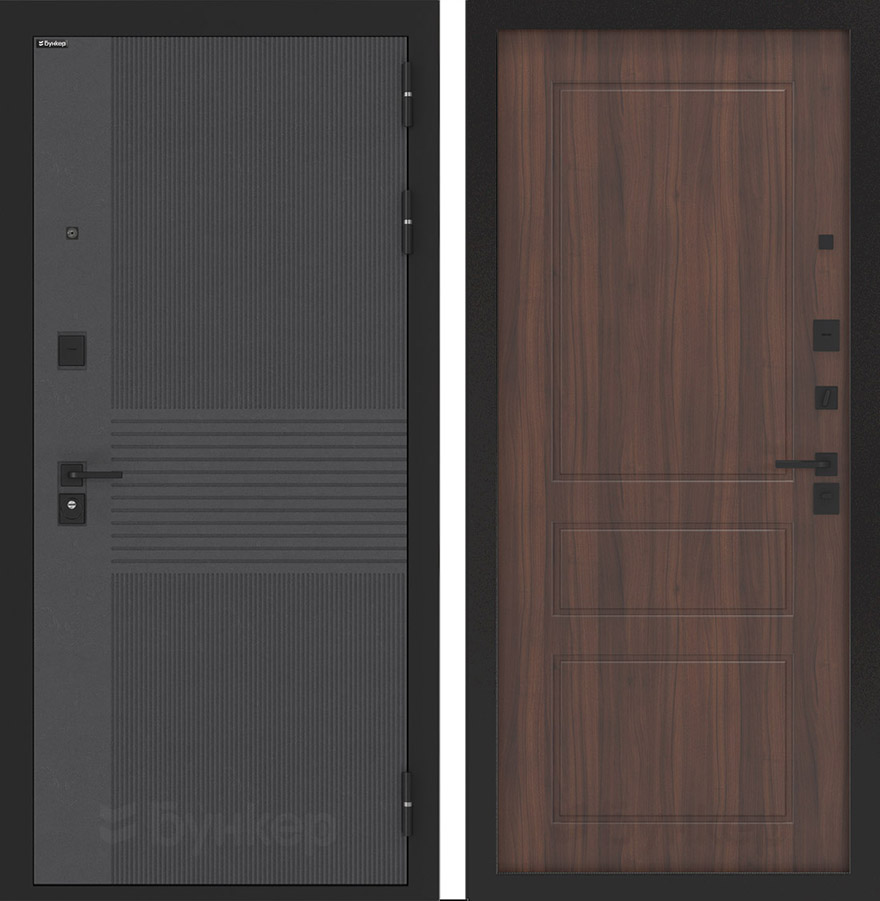 ФурнитураЧерная матовая: Броненакладка, сувальдные накладки со шторкой, ручка, ночник, цилиндр ключ-вертушка (производитель не регламентируется), глазок сбоку