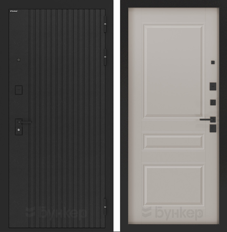 ФурнитураЧерная матовая: Броненакладка, сувальдные накладки со шторкой, ручка, ночник, цилиндр ключ-вертушка (производитель не регламентируется), глазок сбоку