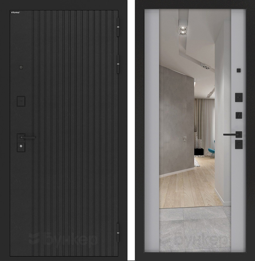 ФурнитураЧерная матовая: Броненакладка, сувальдные накладки со шторкой, ручка, ночник, цилиндр ключ-вертушка (производитель не регламентируется), глазок сбоку