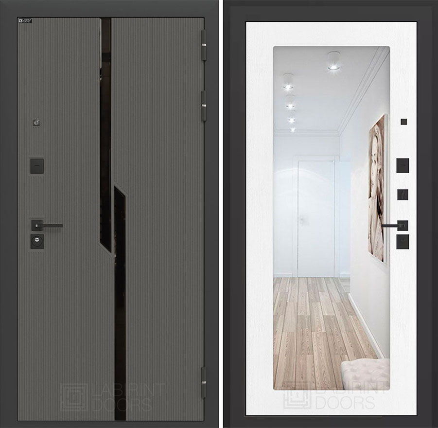 Внешняя отделка:Фрезерованная МДФ панель 10 мм ПВХ «Лофт графит» стекло черное фацет, с металлическим наличником
