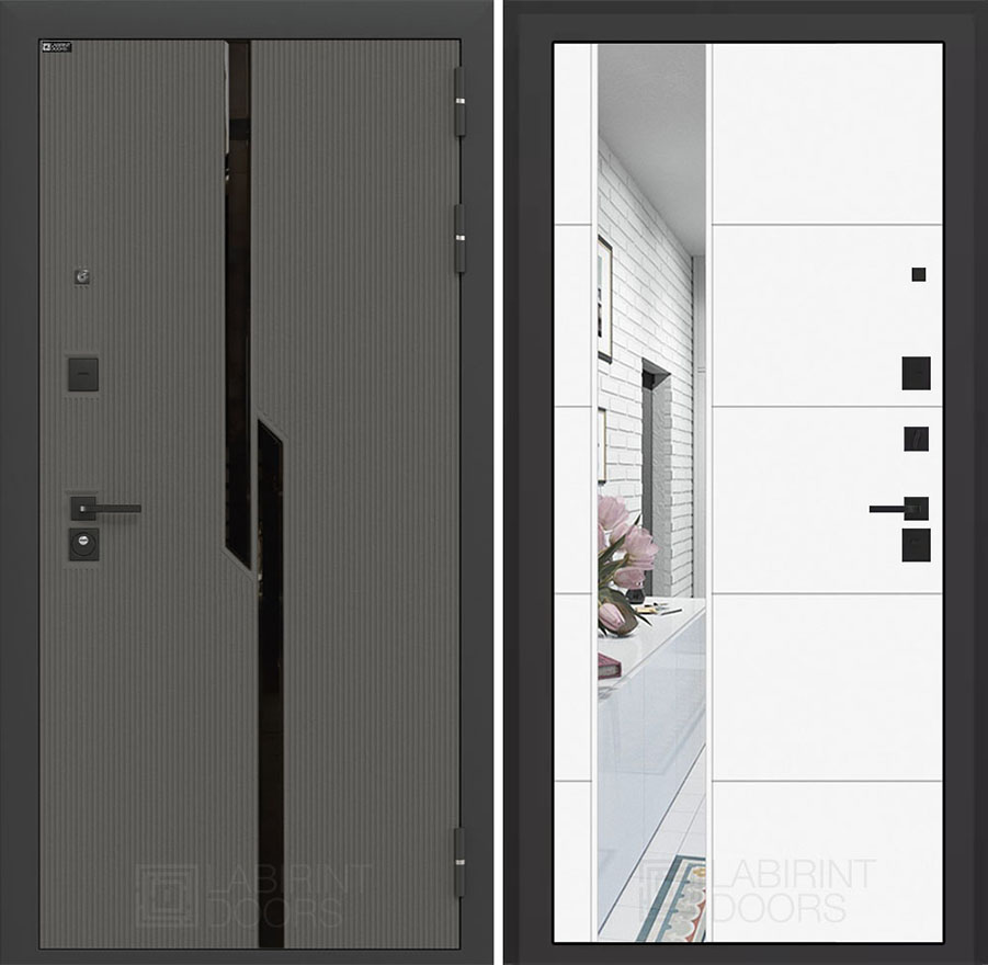 Внешняя отделка:Фрезерованная МДФ панель 10 мм ПВХ «Лофт графит» стекло черное фацет, с металлическим наличником