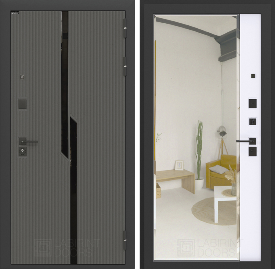 Внешняя отделка:Фрезерованная МДФ панель 10 мм ПВХ «Лофт графит» стекло черное фацет, с металлическим наличником