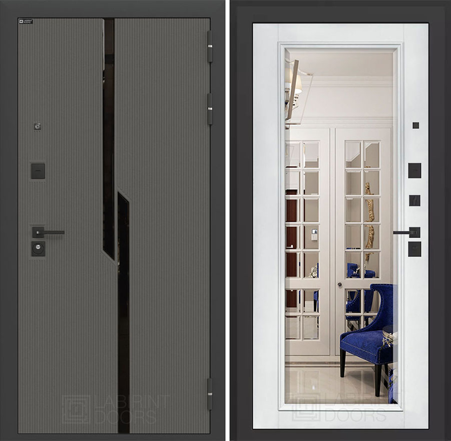 Внешняя отделка:Фрезерованная МДФ панель 10 мм ПВХ «Лофт графит» стекло черное фацет, с металлическим наличником