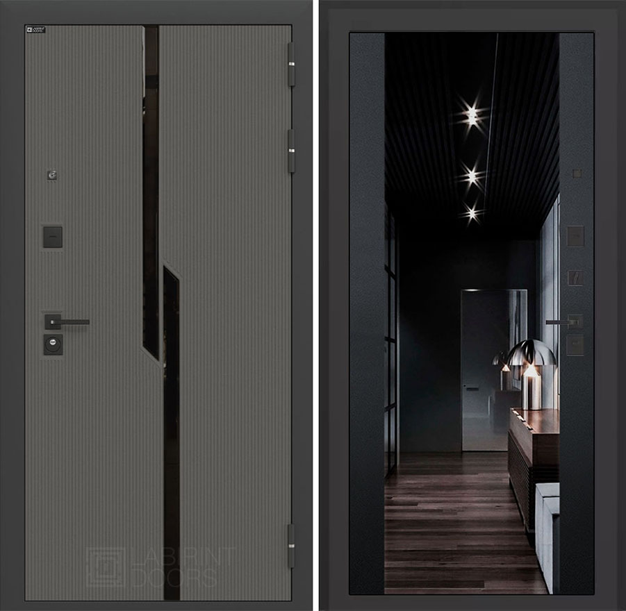 Внешняя отделка:Фрезерованная МДФ панель 10 мм ПВХ «Лофт графит» стекло черное фацет, с металлическим наличником