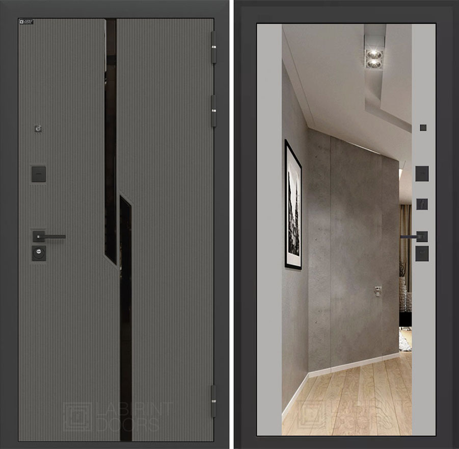 Внешняя отделка:Фрезерованная МДФ панель 10 мм ПВХ «Лофт графит» стекло черное фацет, с металлическим наличником