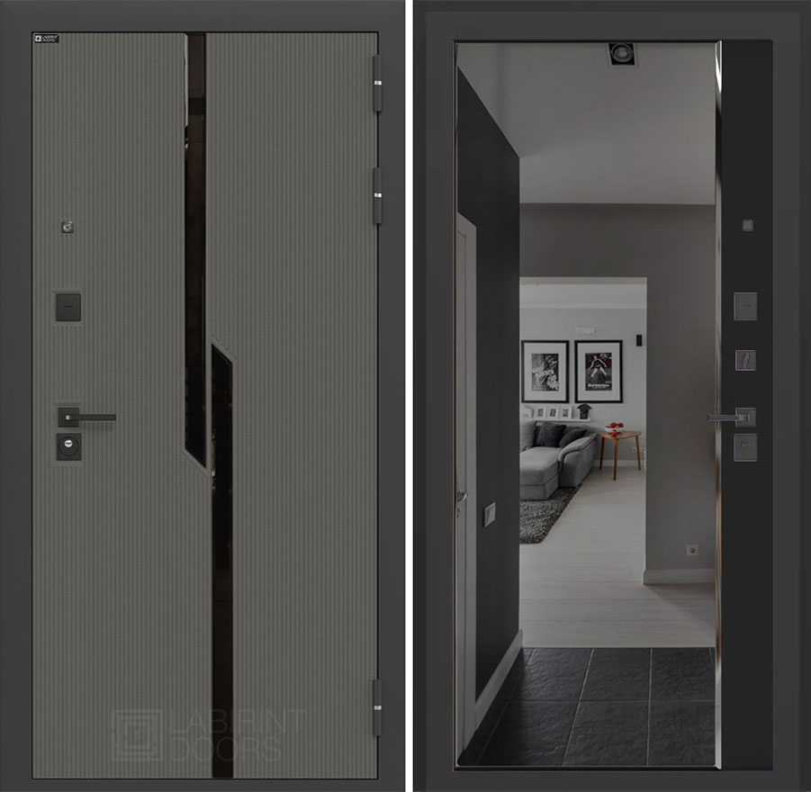 Внешняя отделка:Фрезерованная МДФ панель 10 мм ПВХ «Лофт графит» стекло черное фацет, с металлическим наличником
