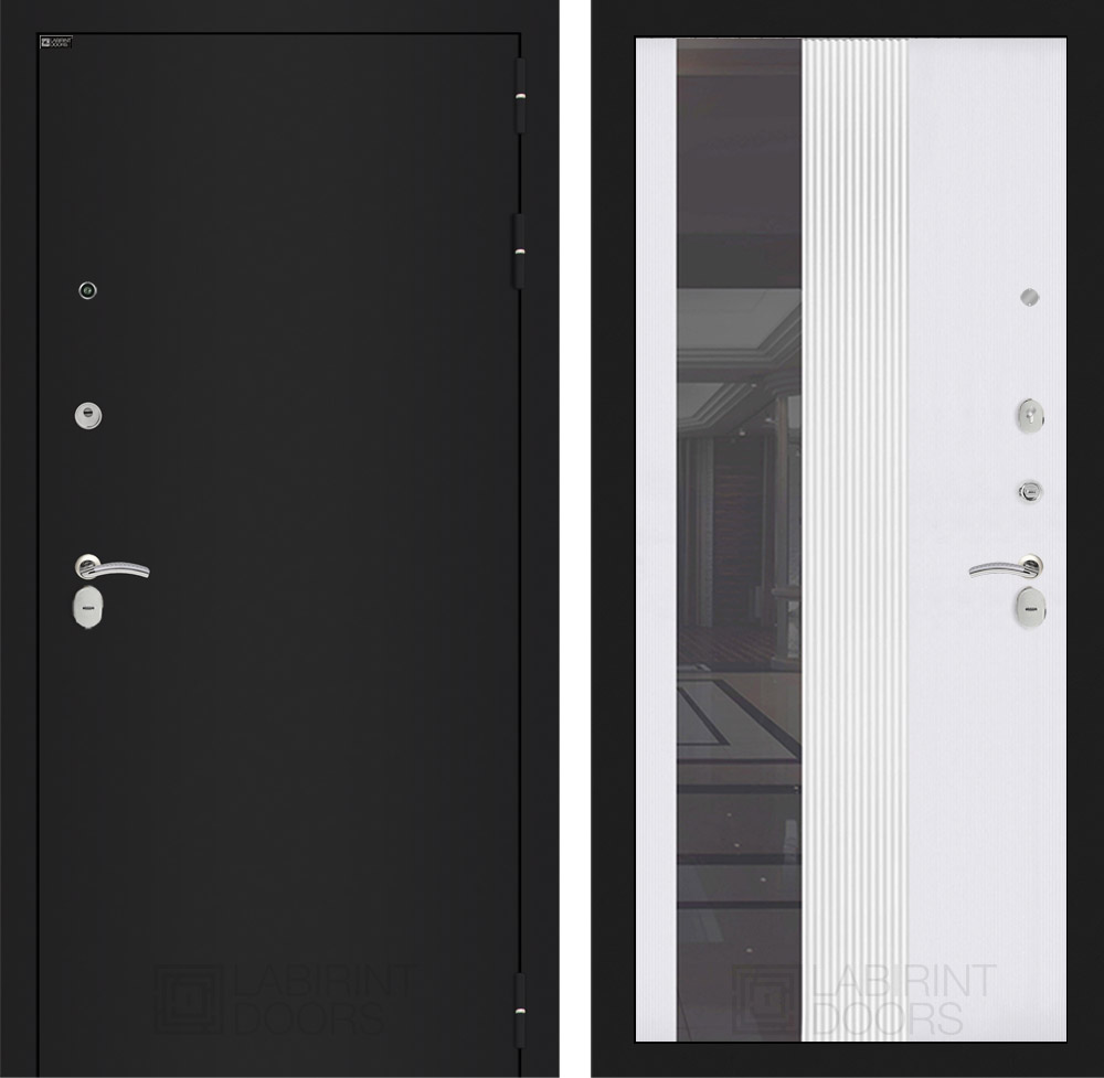 КЛАССИК Шагрень черная 32 — Зеркало тонированное — Белый софт рельеф