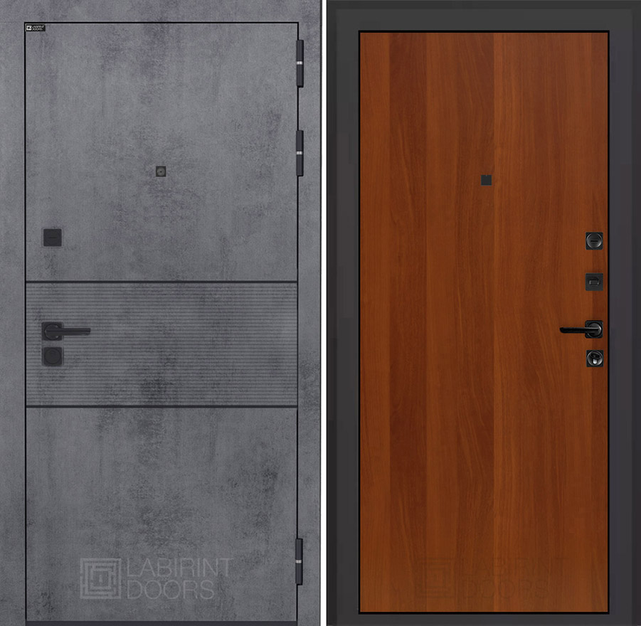 Внешняя отделка:Декоративная МДФ панель 10 мм с наличниками, цвет «Бетон темный», вставка черный молдинг