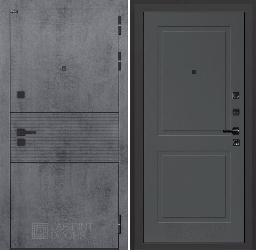 Внешняя отделка:Декоративная МДФ панель 10 мм с наличниками, цвет «Бетон темный», вставка черный молдинг