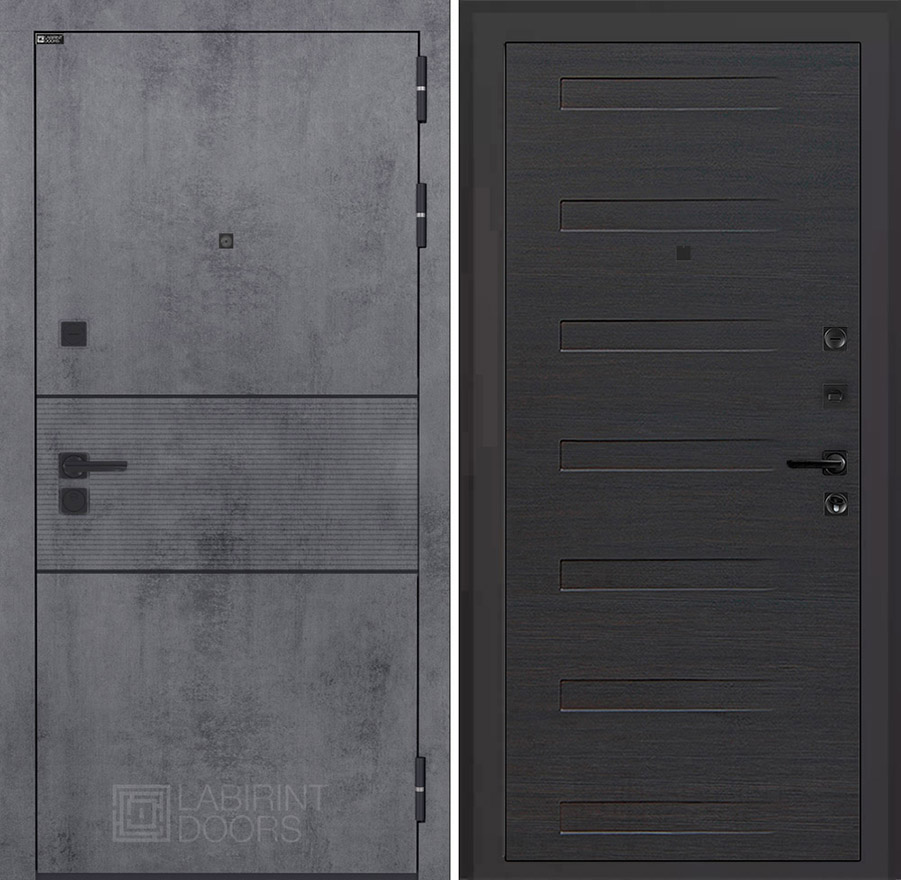 Внешняя отделка:Декоративная МДФ панель 10 мм с наличниками, цвет «Бетон темный», вставка черный молдинг