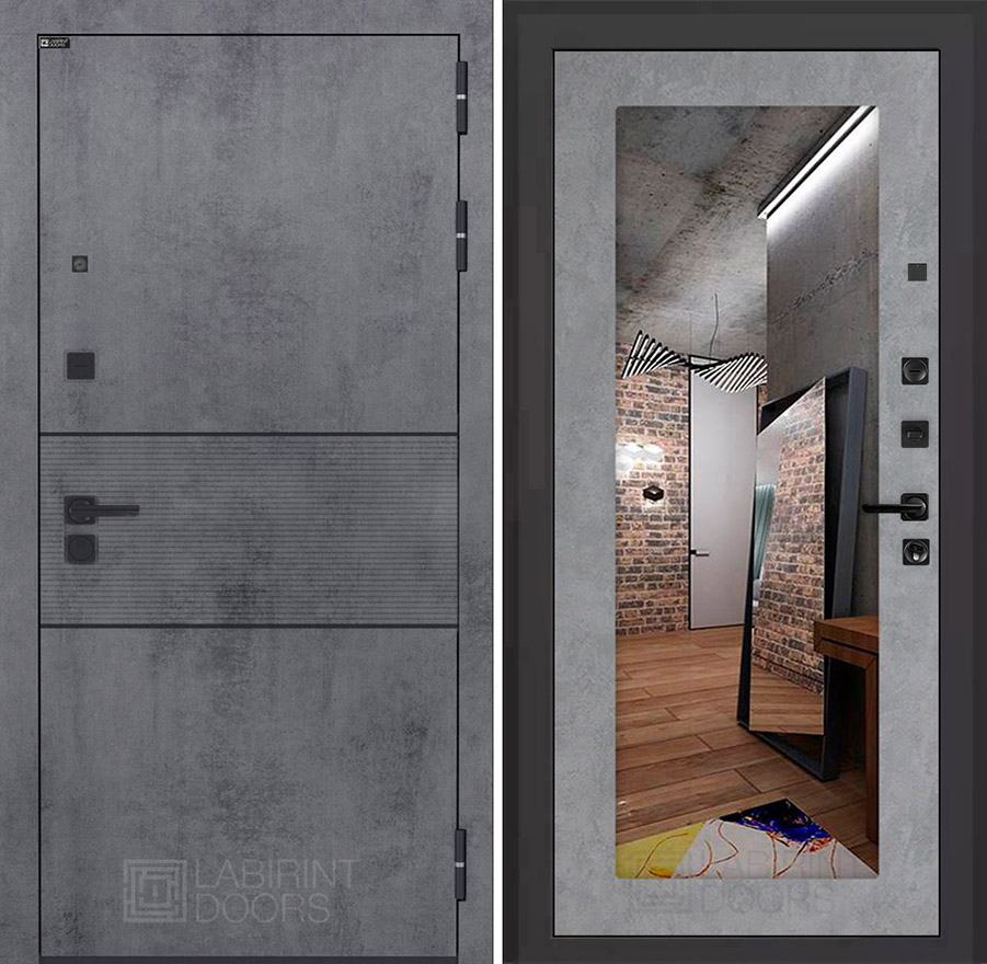 Внутренняя отделка:Фрезерованная МДФ панель 12 мм, цвет «Бетон светлый», зеркало с защитой от осколков