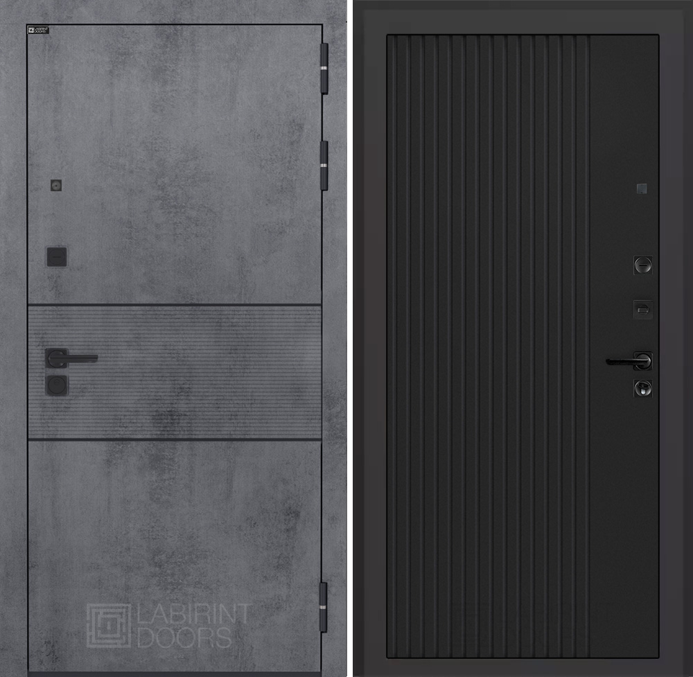 Внешняя отделка:Декоративная МДФ панель 10 мм с наличниками, цвет «Бетон темный», вставка черный молдинг