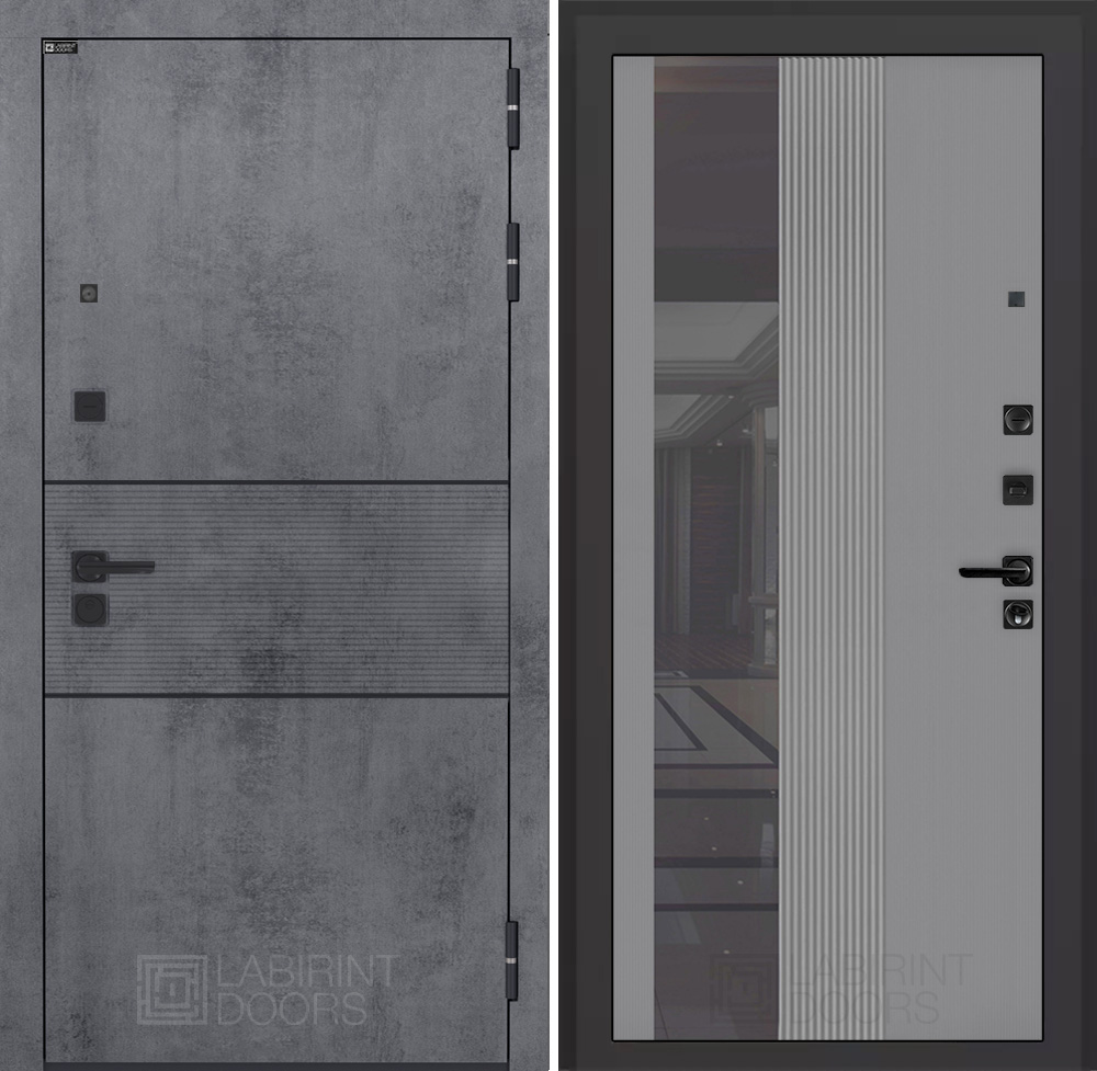 Внешняя отделка:Декоративная МДФ панель 10 мм с наличниками, цвет «Бетон темный», вставка черный молдинг