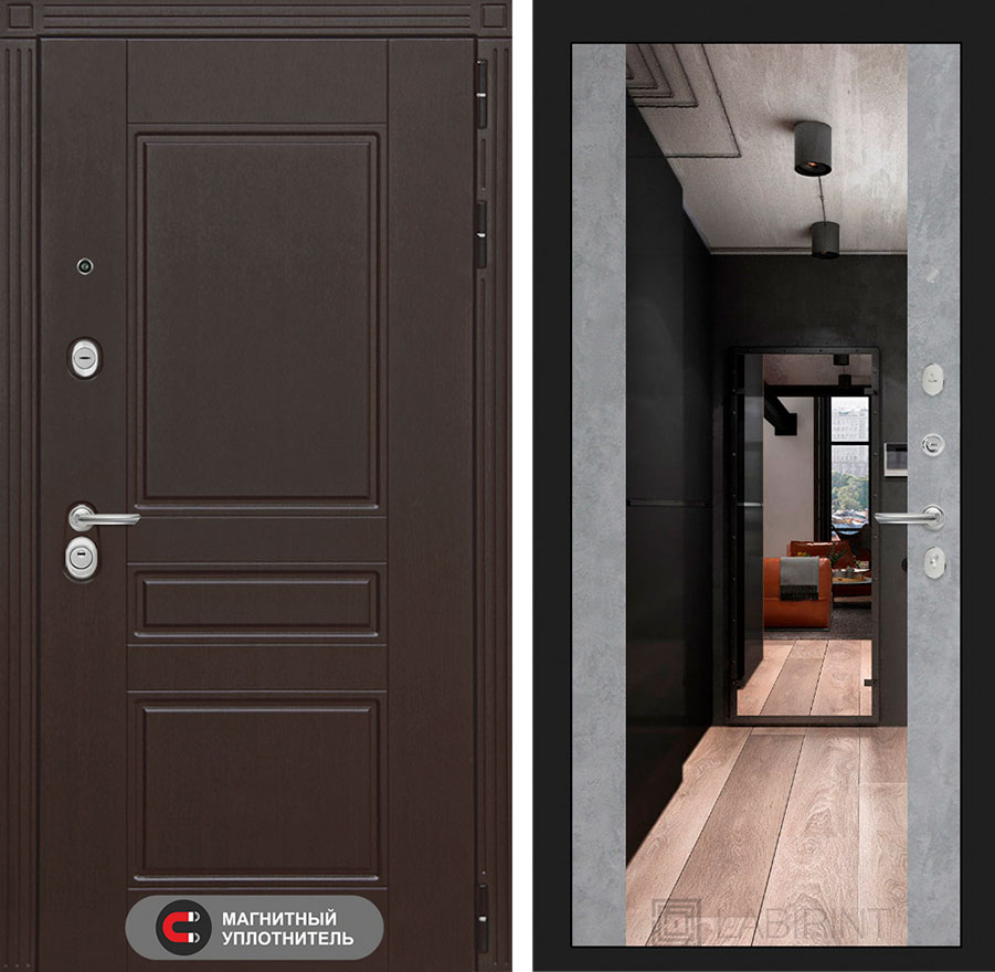 | Внутренняя отделка: | Фрезерованная МДФ панель 16 мм, цвет «Бетон светлый», зеркало в полный рост с защитой от осколков | |||