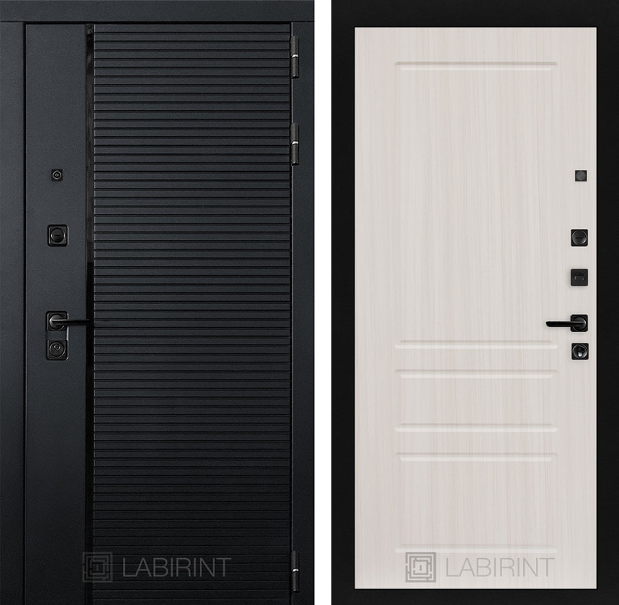 Комплектация:Фурнитура в черном цвете: Броненакладка врезная, накладка со шторкой, глазок сбоку, дверная ручка, ночная задвижка. Цилиндр ключ-вертушка (производитель не регламентируется), регулируемый эксцентрик