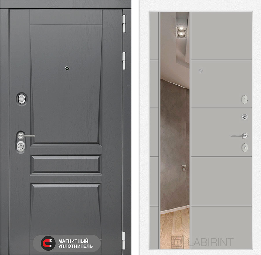 | Внутренняя отделка: | Фрезерованная МДФ панель 12 мм, цвет «Грей софт», зеркало в полный рост с защитой от осколков | |||