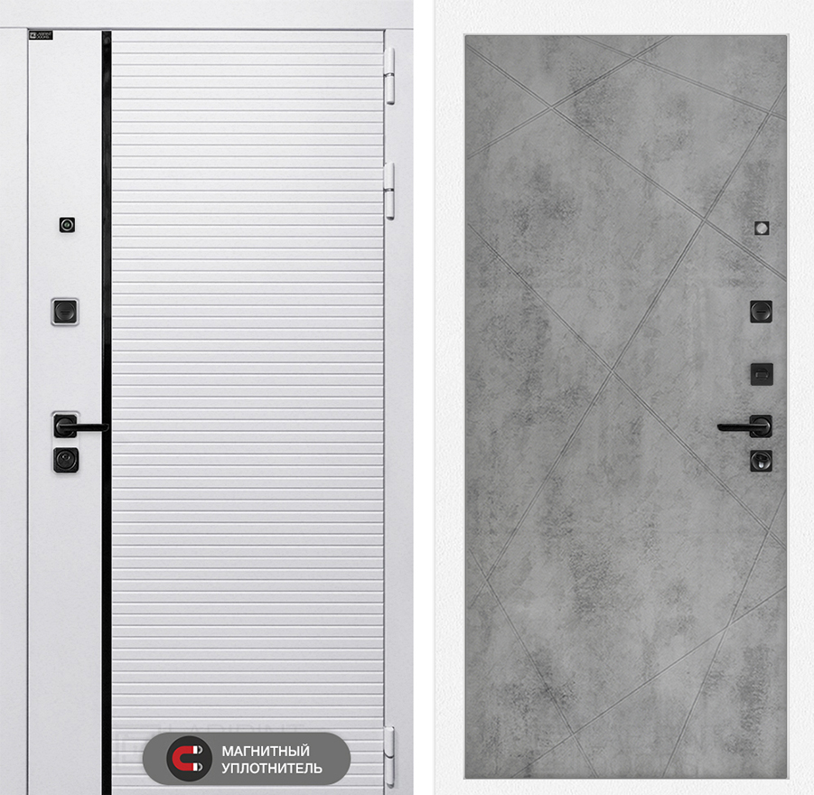 Контуры уплотнения:3 контура (2 белых уплотнителя на полотне, 1 — магнитный на коробе) обеспечивают максимальную защиту от холода, шума и запахов.