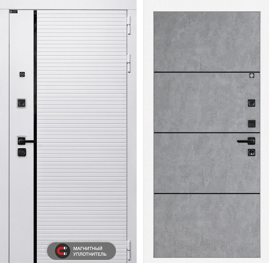 | Контуры уплотнения: | 3 контура (2 белых уплотнителя на полотне, 1 — магнитный на коробе) обеспечивают максимальную защиту от холода, шума и запахов. Магнитный уплотнитель один из самый эффективных, аналогичный устанавливают на холодильнике, где важна полная герметичность | |||