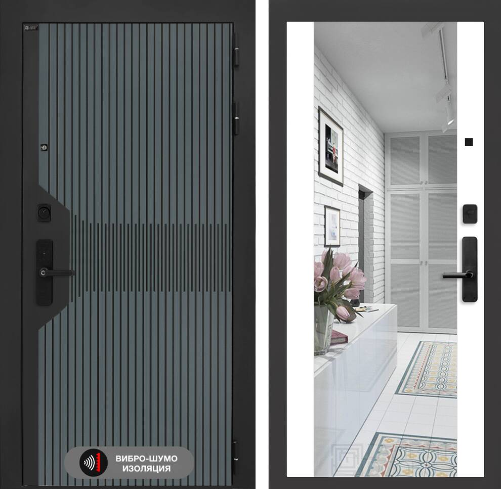 Врезная броненакладка, глазок сбоку, цилиндр ключ-вертушка (производитель не регламентируется), электронный замок без wi-fi шлюза