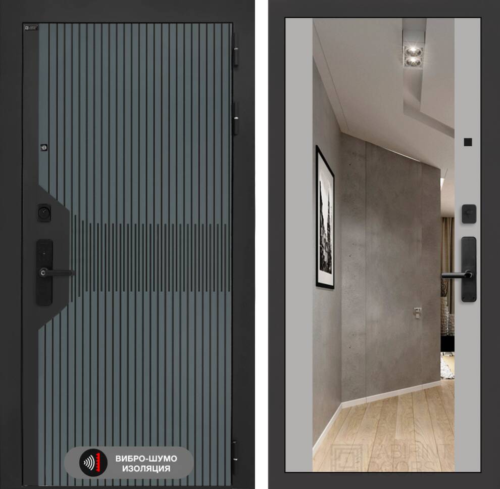 Декоративная MDF панель 12 мм с широким зеркалом, цвет «Софт Грей» (без текстуры)
