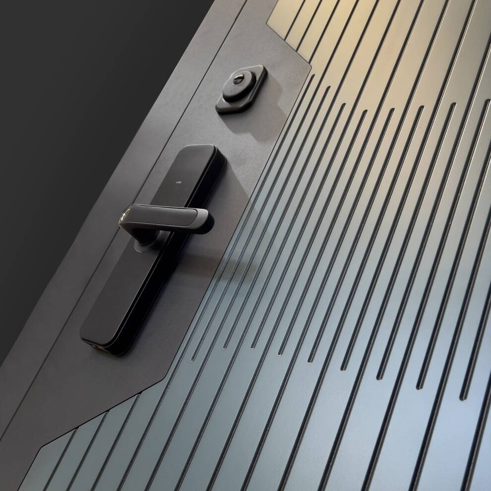 Врезная броненакладка, глазок сбоку, цилиндр ключ-вертушка (производитель не регламентируется), электронный замок без wi-fi шлюза