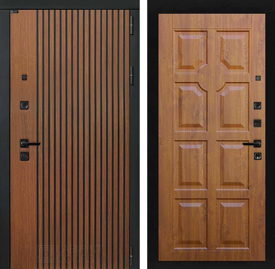 Накладки:Врезная броненакладка, сувальдная накладка черная. Цилиндр ключ-вертушка (производитель не регламентируется)