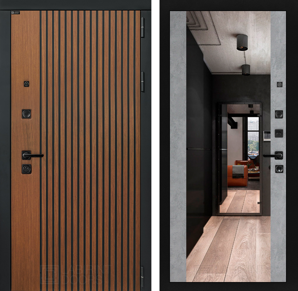 Внутренняя отделка:Фрезерованная МДФ панель 16 мм, цвет «Бетон светлый», зеркало в полный рост с защитой от осколков