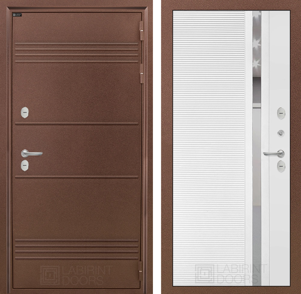 | Внешняя отделка: | Металлическая отделка с давлением Д44. Полимерное покрытие «Антик медный» с дополнительным цинковым грунтованием для защиты от коррозии. Фигурный наличник ФН-2 | |||