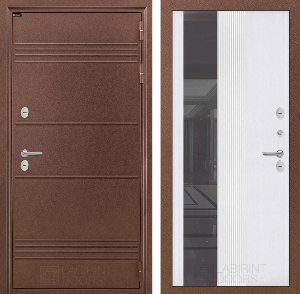 | Внешняя отделка: | Металлическая отделка с давлением Д44. Полимерное покрытие «Антик медный» с дополнительным цинковым грунтованием для защиты от коррозии. Фигурный наличник ФН-2 | |||