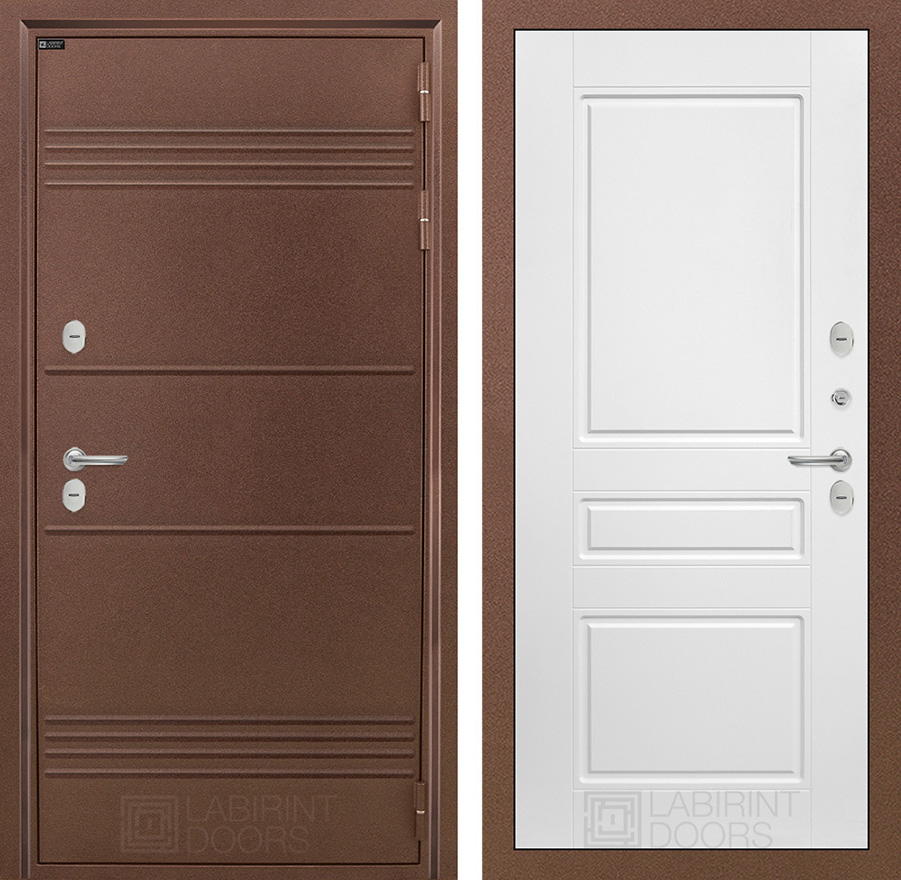 | Внешняя отделка: | Металлическая отделка с давлением Д44. Полимерное покрытие «Антик медный» с дополнительным цинковым грунтованием для защиты от коррозии. Фигурный наличник ФН-2 | |||