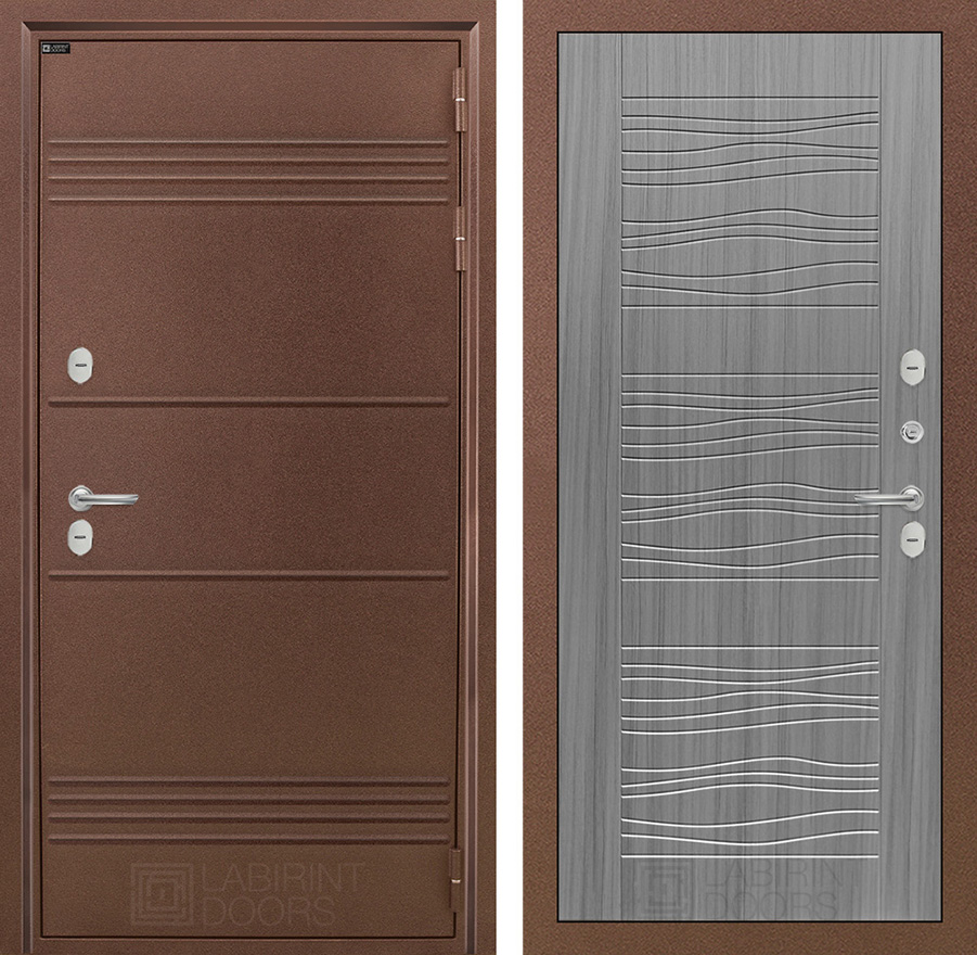 | Внешняя отделка: | Металлическая отделка с давлением Д44. Полимерное покрытие «Антик медный» с дополнительным цинковым грунтованием для защиты от коррозии. Фигурный наличник ФН-2 | |||